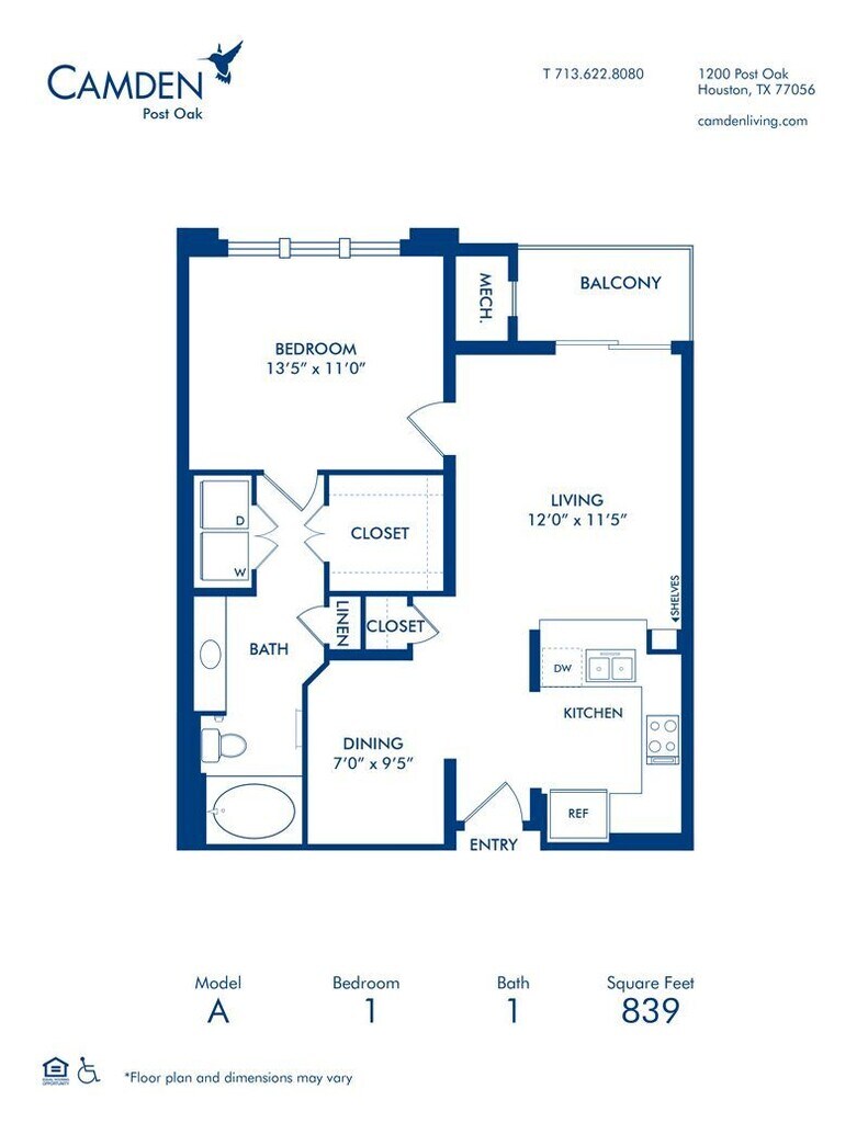 Modelo de apartamento: A1 Dormitorio, 1 Baño, 839 sq ftNo Disponible![]()