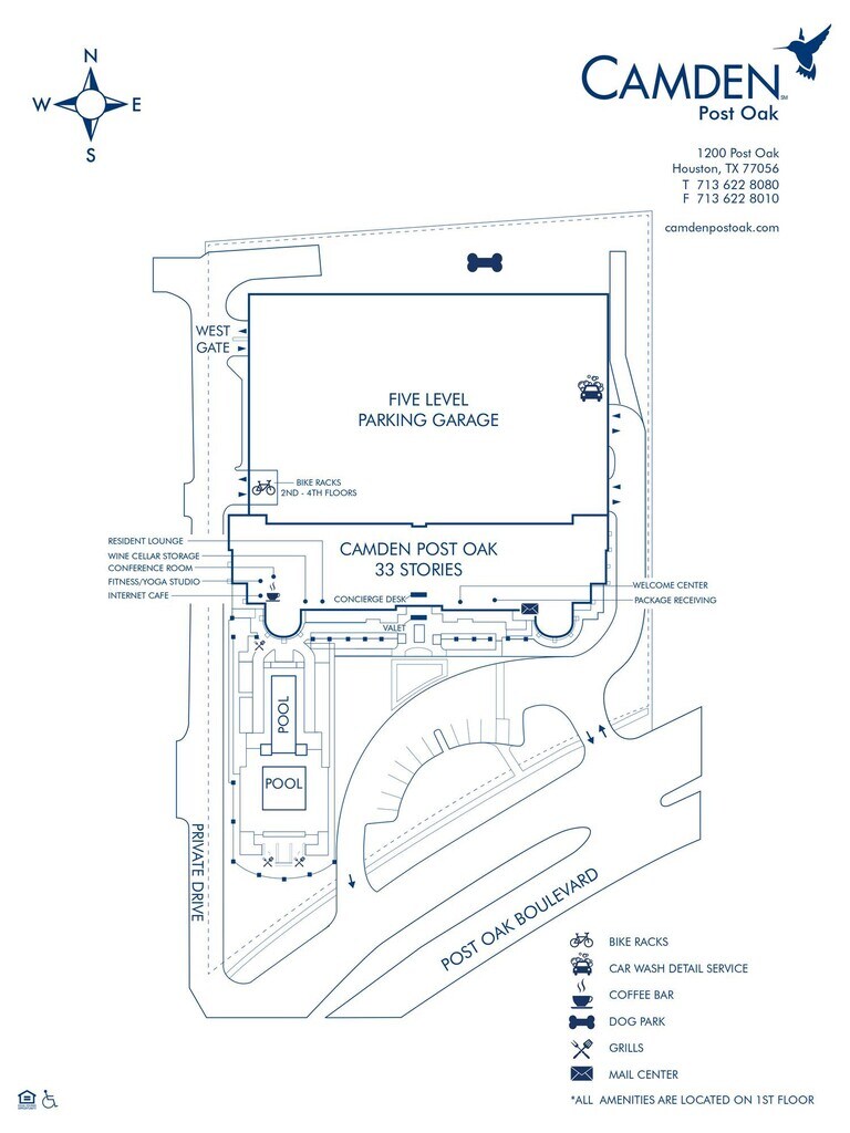 Camden Post Oak es un edificio lujoso de gran altura cerca del Houston Galleria. Nuestros apartamentos y penthouses ofrecen los mejores acabados modernos, planos espaciosos y con vistas a la ciudad, todos a partir de solo $1,800. Cada apapartamento de dos o tres habitaciones o penthouse ofrecen cocinas gourmet con encimeras de cuarzo, electrodomésticos de acero inoxidable e impresionantes techos de 10 pies de altura con molduras de techo. Además de una vida de lujo inteligente, Camden Post Oak ofrece a los residentes un estilo de vida libre de estrés. Desde nuestro servicio de conserje las 24 horas a nuestro servicio de valet gratuito; Camden Post Oak se adapta a todas tus necesidades. Nuestro complejo que admite mascotas también ofrece 2 piscinas estilo centro turístico con amplias áreas de entretenimiento, un moderno gimnasio abierto las 24 horas y mucho más. Disfruta de estar cerca de todo en Houston; de excelentes restaurantes y tiendas en los centros comerciales Uptown Park y Galleria, para trotar y andar en bicicleta en Memorial Park. Con una administración galardonada, una excelente reputación y un lugar insuperable, Camden Post Oak es la excelencia.