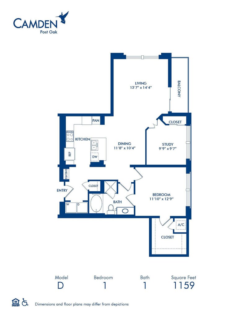 Modelo de apartamento: D1 Dormitorio, 1 Baño, 1159 sq ftNo Disponible![]()