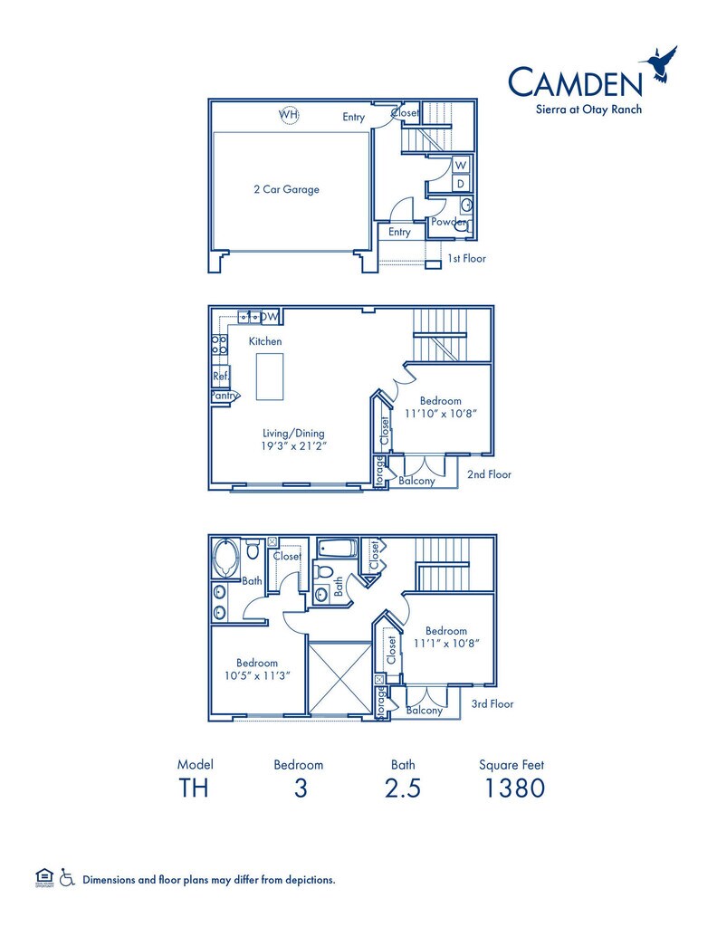 Modelo de apartamento: TH3 Dormitorios, 2.5 Baños, 1380 sq ftNo Disponible![]()