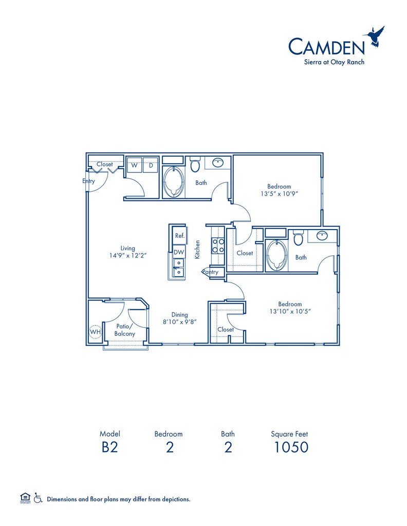 Modelo de apartamento: B22 Dormitorios, 2 Baños, 1050 sq ftNo Disponible![]()