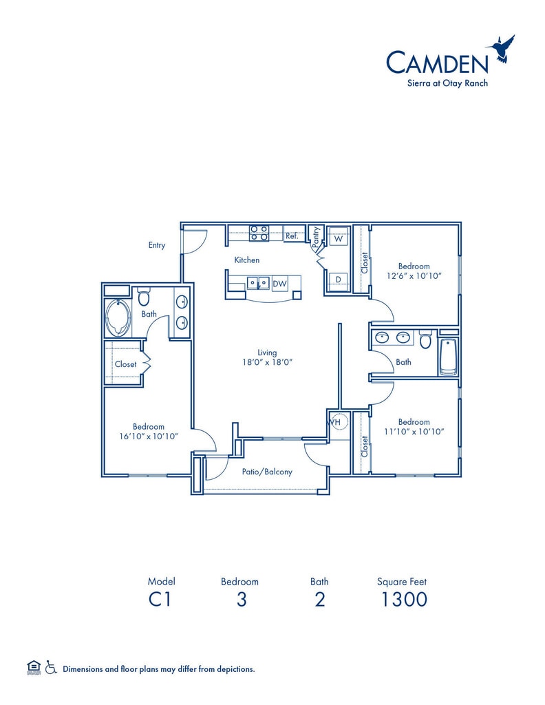 Modelo de apartamento: C13 Dormitorios, 2 Baños, 1300 sq ftNo Disponible![]()