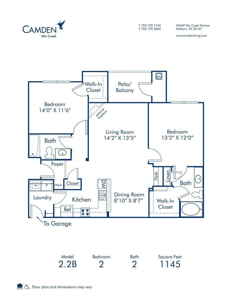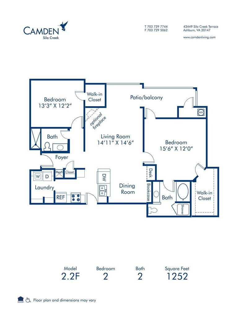 Ofrecemos recorridos autoguiados, en video en vivo y para miembros del equipo. ¡Llame 24 x 7 para programar! Camden Silo Creek está ubicado alrededor de una reserva natural en la subdivisión Broadlands de Ashburn, Virginia, con cómodo acceso cerca a Loudoun County Parkway y la ruta Dulles Greenway. Ofrecemos amplios apartamentos de una, dos y tres habitaciones con características de lujo, tales como gabinetes personalizados estilo espresso, pisos estilo madera, electrodomésticos de acero inoxidable, lavadora y secadoras, 9 pies de altura, chimeneas, balcones envolventes que ofrecen una hermosas vistas de Ashburn y mucho más. ¿Trabajas desde casa? Tenemos todo lo que necesitas. Ver nuestros apartamentos disponibles y encontrar casi veinte planos de planta diseñados a la perfección con el trabajo desde casa en ti, que cuenta con cómodas áreas de escritorio empotrado! Nuestras comodidades incluyen alojamiento que admite mascotas con un parque para perros privado y a un corto viaje a destinos populares para mascotas, así como un gimnasio 24 horas, acceso a un sendero para caminar de media milla con estaciones de ejercicios, piscina con estilo de centro turístico y un área de juegos para niños en el lugar. Camden Silo Creek también está ubicado a solo minutos de tres hermosos parques y de las mejores tiendas de Ashburn, restaurantes, y lugares de entretenimiento. Ten en cuenta que toda la disponibilidad del plano de planta está sujeta a cambios. Llama hoy mismo para obtener más información.