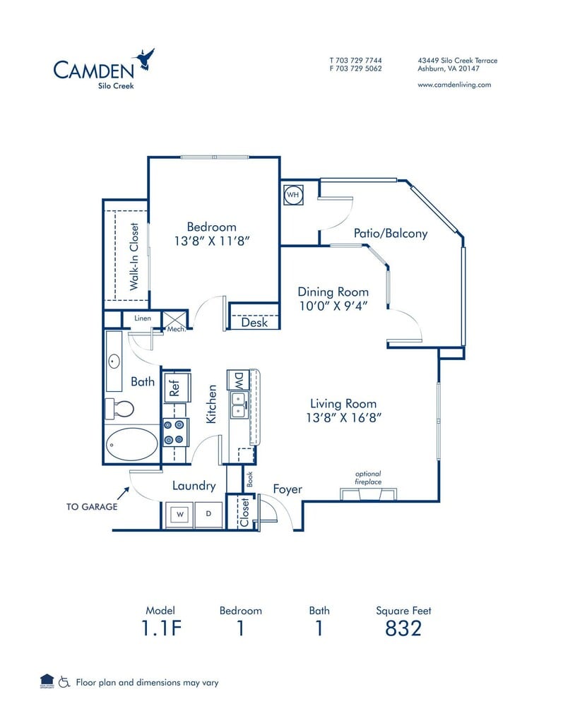 Modelo de apartamento: 1.1F1 Dormitorio, 1 Baño, 832 sq ftNo Disponible![]()
