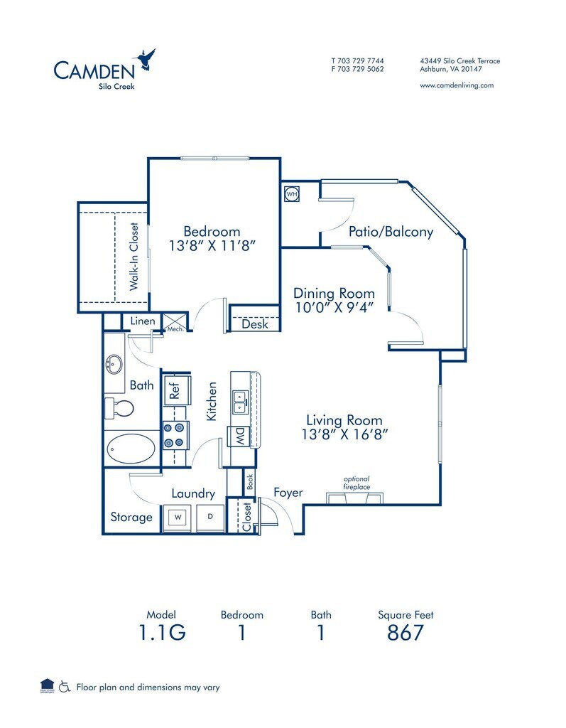 Modelo de apartamento: 1.1G1 Dormitorio, 1 Baño, 867 sq ftNo Disponible![]()