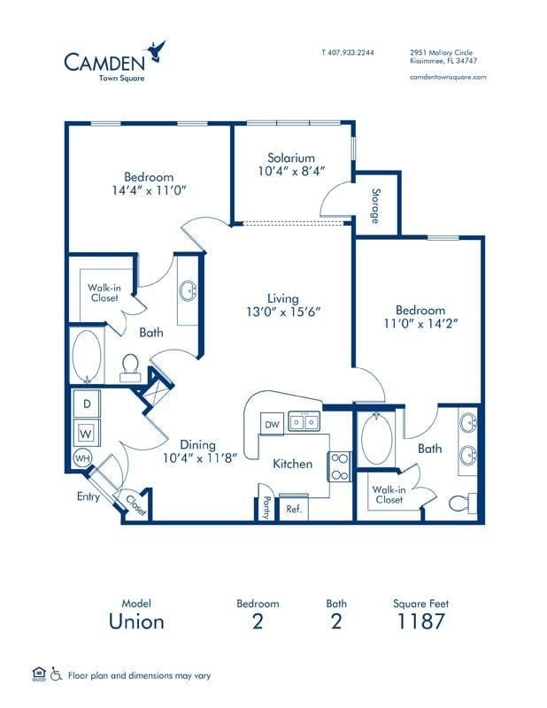 Modelo de apartamento: Union2 Dormitorios, 2 Baños, 1187 sq ftNo Disponible![]()
