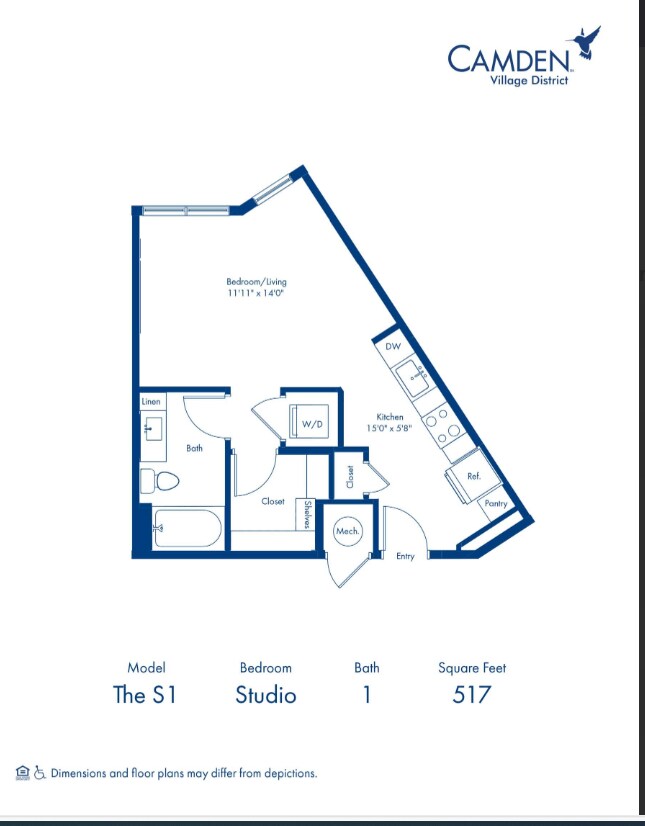 Estudio, 1 Baño, 517 pies²Disponible AhoraGalería del Modelo
