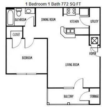1 Dormitorio, 1 Baño, 772 pies²Galería del Modelo
