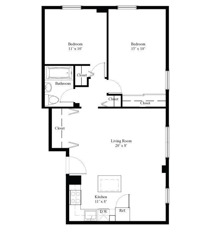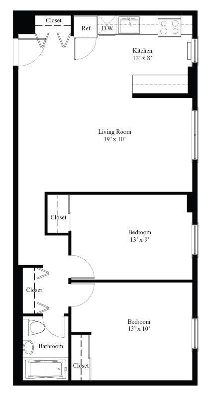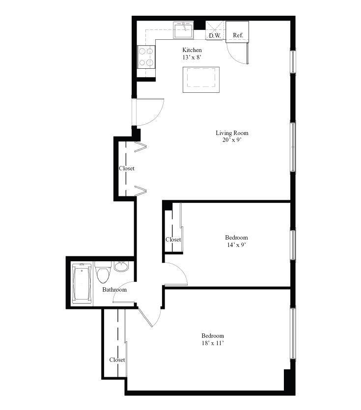Modelo de apartamento: 1 Bedroom$2,8101 Dormitorio, 1 Baño, 501 sq ftDisponible AhoraPlanosFotos![]()