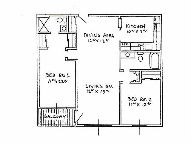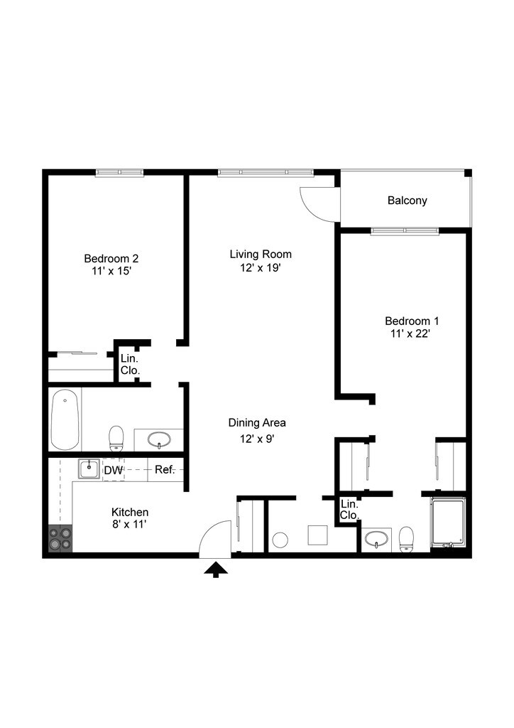 Modelo de apartamento: 2 BR/1 Bth split level Incl.HEATDesde $1,4892 Dormitorios, 1.5 Baños, 950-982 sq ftDisponible AhoraPlanosFotos![]()