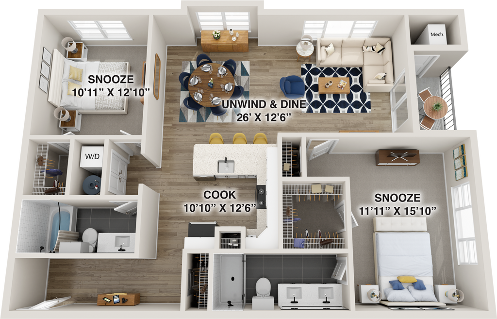 Modelo de apartamento: LoveladiesDesde $3,1412 Dormitorios, 2 Baños, 1540 sq ftNo Disponible![]()