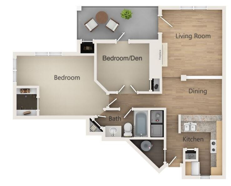 Modelo de apartamento: B1Desde $1,2992 Dormitorios, 1 Baño, 947 sq ftDisponible Ahora![]()