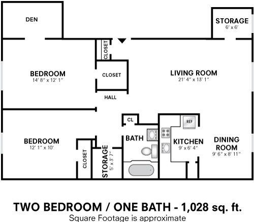 Two Bedroom - 1,028 sqft - Plano 1 ![]()