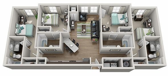 Campus Circle es un complejo de apartamentos ubicado en University Avenue en Urbana, Illinois. Te encontrarás a unos pasos de distancia del campus de la U of I. Apartamentos de 1, 2 y 4 habitaciones, todos con habitaciones y baños privados disponibles. ¡Tu apartamento viene completamente amueblado con un paquete de muebles premium incluido automáticamente en tu cuota de alquiler! Lavadora y secadora en cada apartamento y el agua está incluida. Campus Circle ofrece Internet inalámbrico de alta velocidad, basura/reciclaje/alcantarillado y una asignación de electricidad por persona, por cuota. No te olvides de las comodidades estilo centro turístico a las que tendrás acceso, que incluyen el gimnasio de dos pisos abierto las 24 horas, 20 salas de estudio privadas (12 con televisores), estudio de yoga y baile, sala de cine/aula virtual y centro de negocios ¡con impresión GRATIS*, terraza en la azotea con 2 fogatas y mucho más! Los espacios se llenan rápido y las tarifas son en base a un sistema de nivel. Cuanto antes firmes, recibirás la mejor tarifa. Cuanto más esperes, más pagarás. *Tarifas y disponibilidad sujetas a cambios. Se aplican restricciones. Solo una cantidad limitada disponible.