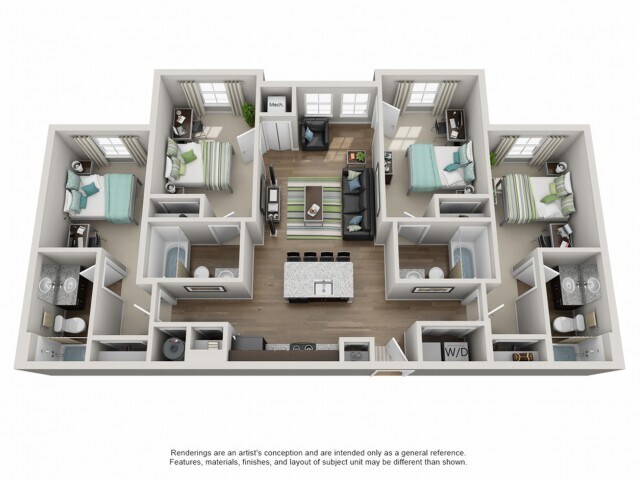 El rango de alquiler de Apartamentos 1 dormitorios a 4 dormitorios en Campus Circle Urbana van desde $909 a $1,739