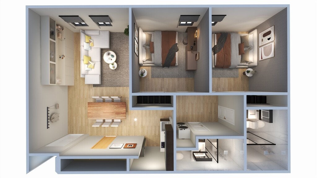 2 Dormitorios, 2 Baños, 574 pies²Disponible AhoraGalería del Modelo