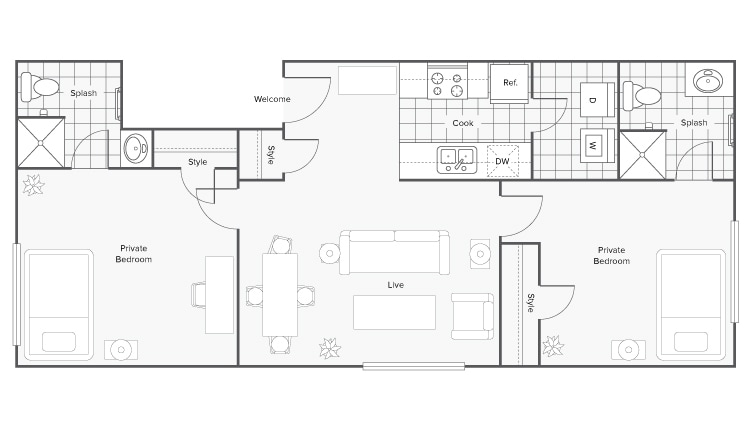 Modelo de apartamento: Two Bedroom Two Bath$7392 Dormitorios, 2 Baños, 809 sq ftDisponible AhoraTwo Bedroom Two Bath - Plano 1 Two Bedroom Two Bath - Plano 2 Unidad de apartamento: PrivateModelo de apartamento: Two Bedroom Two Bath$7392 Dormitorios, 2 Baños, up to 809 sq ftDisponible AhoraUnidad de apartamento: PrivateModelo de apartamento: Two Bedroom Two Bath$7392 Dormitorios, 2 Baños, up to 809 sq ftDisponible August 15, 2026Two Bedroom Two Bath Renovated Furnished