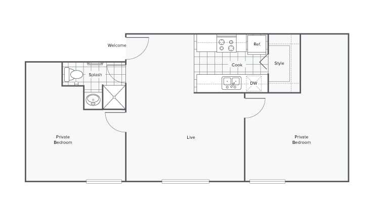 Two Bedroom Two Bath - Plano 2 Unidad de apartamento: PrivateModelo de apartamento: Two Bedroom Two Bath$7392 Dormitorios, 2 Baños, up to 809 sq ftDisponible AhoraUnidad de apartamento: PrivateModelo de apartamento: Two Bedroom Two Bath$7392 Dormitorios, 2 Baños, up to 809 sq ftDisponible August 15, 2026Two Bedroom Two Bath Renovated Furnished