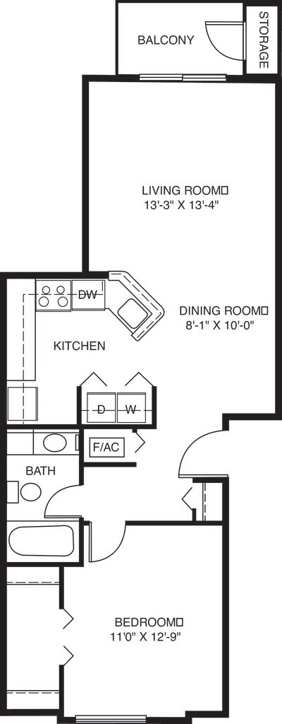 1 Dormitorio, 1 Baño, 709-807 pies²Disponible AhoraGalería del Modelo