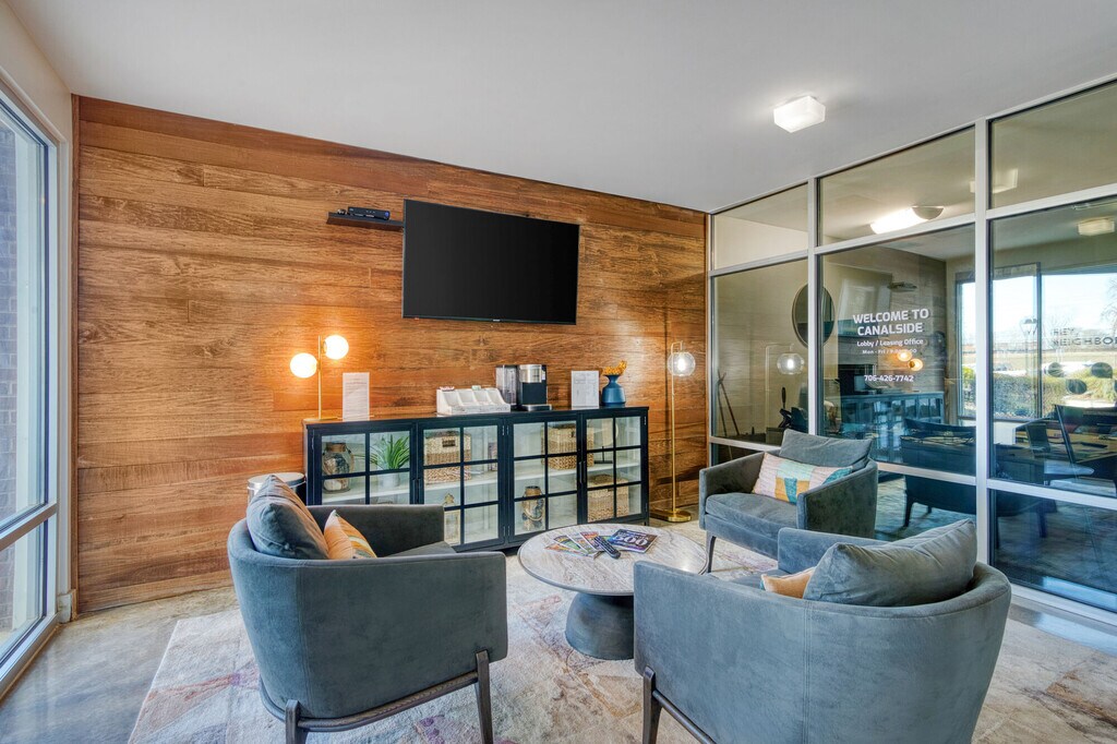 ¡Exclusivo estilo de vida en apartamento en Augusta, Georgia! Canalside está ubicado a lo largo del canal histórico de Augusta y exactamente frente a Walton Way desde el University Hospital y el Medical District. Con 106 apartamentos de lujo, Canalside cuenta con apartamentos de una y dos habitaciones que ofrecen características modernas que incluyen electrodomésticos de acero inoxidable, encimeras de granito, ventanas amplias para disfrutar de abundante luz natural, pisos estilo de madera, armarios amplios y balcones grandes. Canalside también ofrece un gimnasio completamente equipado que está abierto las 24 horas del día, parrillas a gas perfectas para una barbacoa y una chimenea al aire libre para relajarte con amigos. ¡Si buscas un apartamento moderno y urbano a solo unos pasos del centro de la ciudad, University Hospital, The Medical District y Fort Gordon, no busques más allá de Canalside!