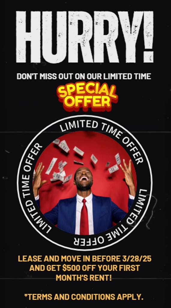 Precio Fecha Disponibilidad Unidad Pies² Depósito Fotos Ver Detalles $1,000 April 21, 2026 280-020 645 $299 $1,000 Disponible Ahora 240-010 645 $299 Características y Comodidades de Modelo