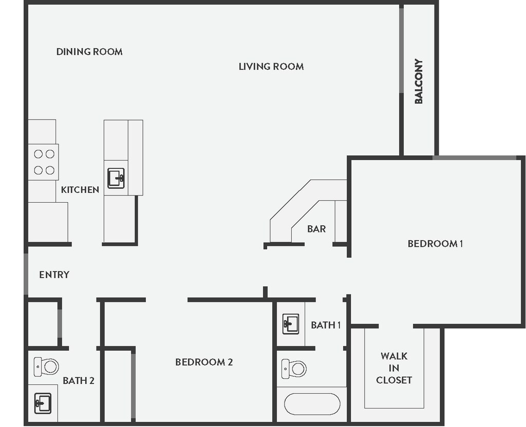 Modelo de apartamento: A2Llame para Precios1 Dormitorio, 1 Baño, 647 sq ftNo Disponible![]()