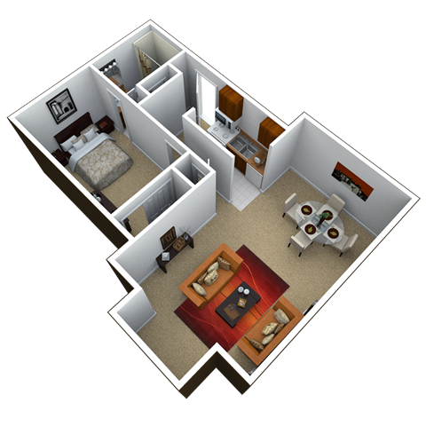 1 Dormitorio, 1 Baño, 800 pies²Disponible Oct 11Galería del Modelo