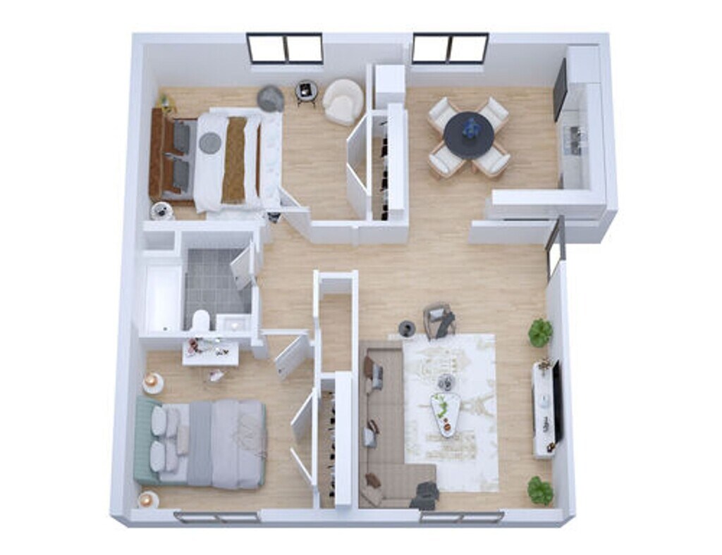 Modelo de apartamento: 2 Bed | 1 Bath$1,6952 Dormitorios, 1 Baño, 900 sq ftDisponible AhoraPlanosFotos![]()