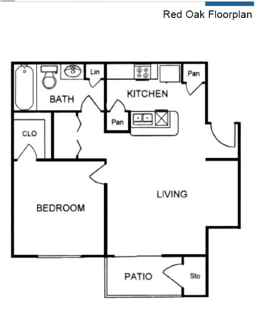 Modelo de apartamento: The Red Oak1 Dormitorio, 1 Baño, 670 sq ftDisponible November 21, 2025![]()