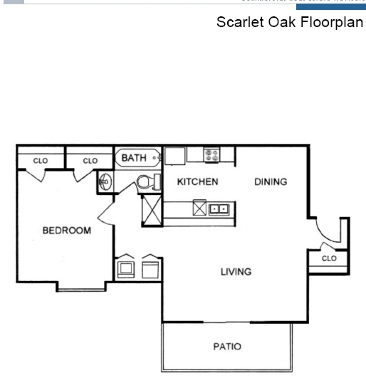 Modelo de apartamento: The Scarlett1 Dormitorio, 1 Baño, 722 sq ftDisponible Ahora![]()