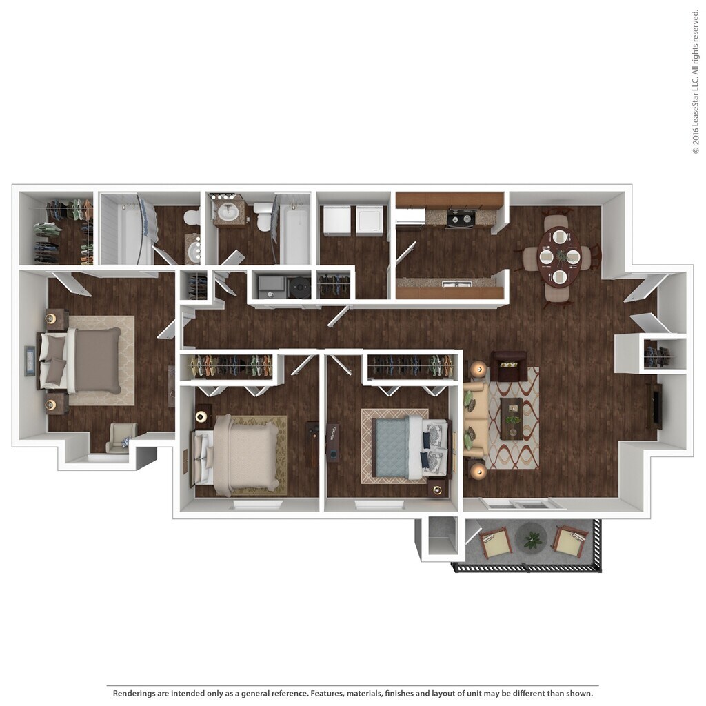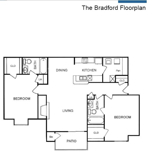 Modelo de apartamento: The Bradford2 Dormitorios, 2 Baños, 1036 sq ftDisponible Ahora![]()
