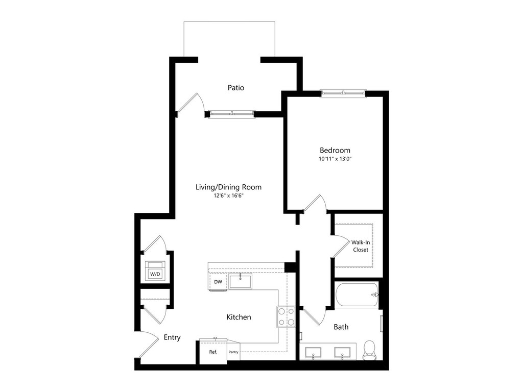 1 Dormitorio, 1 Baño, 750 pies²Disponible AhoraGalería del Modelo