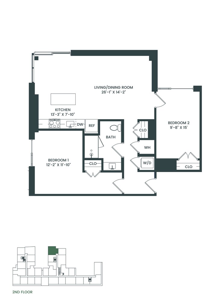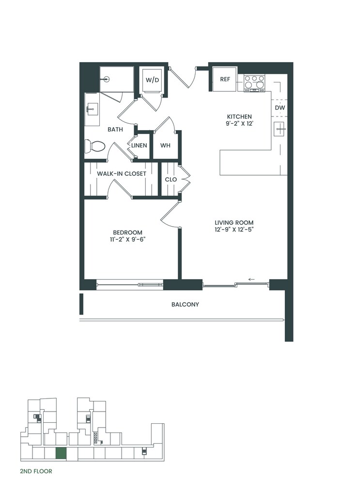 1 Dormitorio, 1 Baño, 643 pies²Disponible AhoraGalería del Modelo