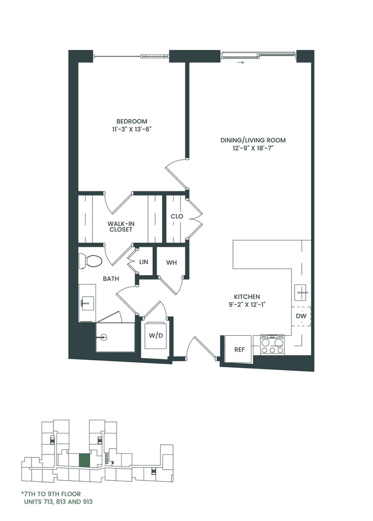 1 Dormitorio, 1 Baño, 769 pies²Disponible AhoraGalería del Modelo