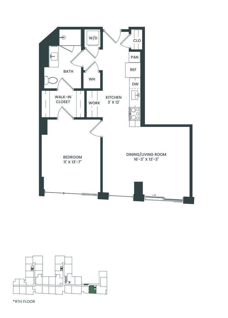 Estudio, 1 Baño, 566 pies²Disponible AhoraGalería del Modelo