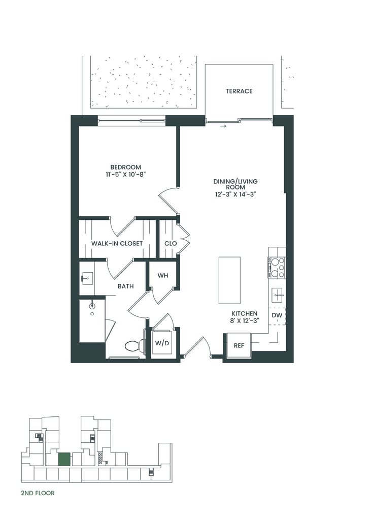 1 Dormitorio, 1 Baño, 811 pies²Disponible AhoraGalería del Modelo