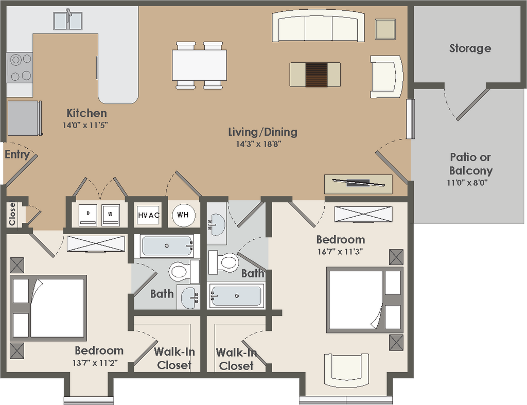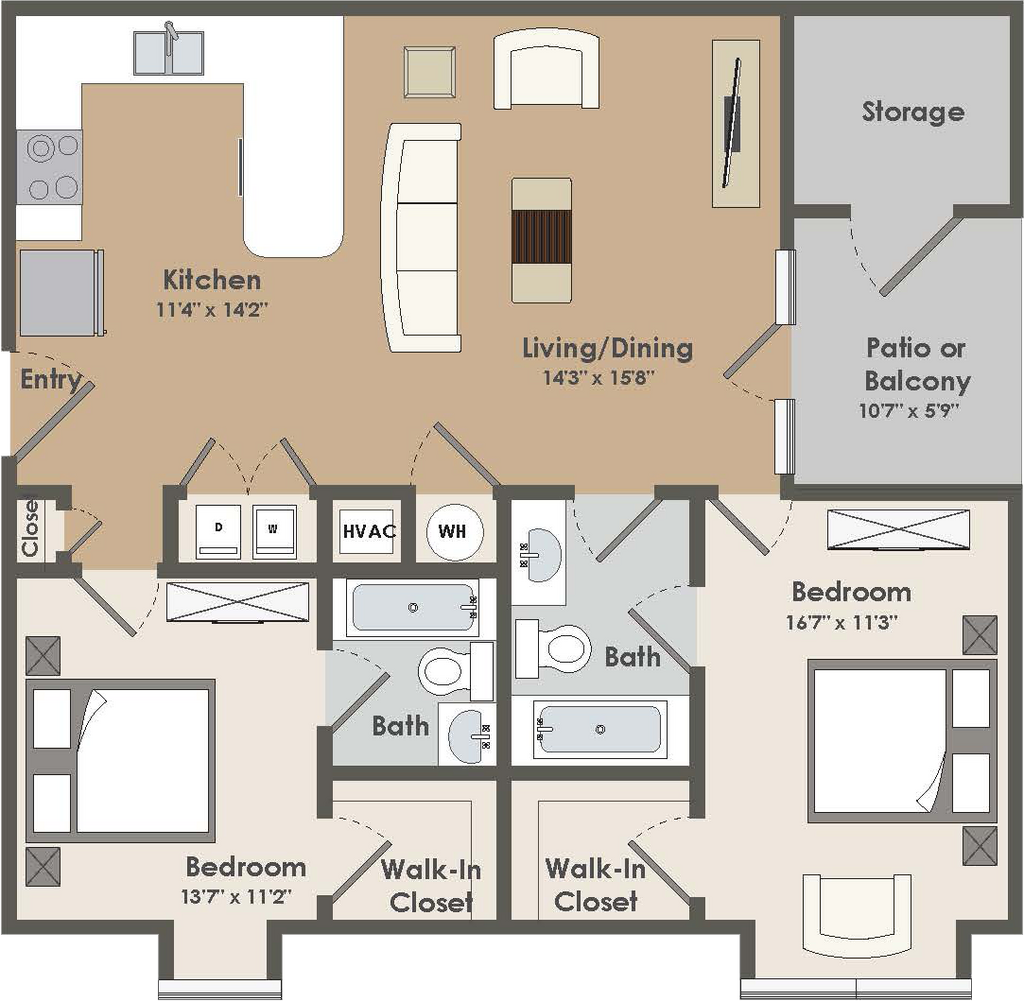 1 Dormitorio, 1 Baño, 750 pies²Disponible AhoraGalería del Modelo