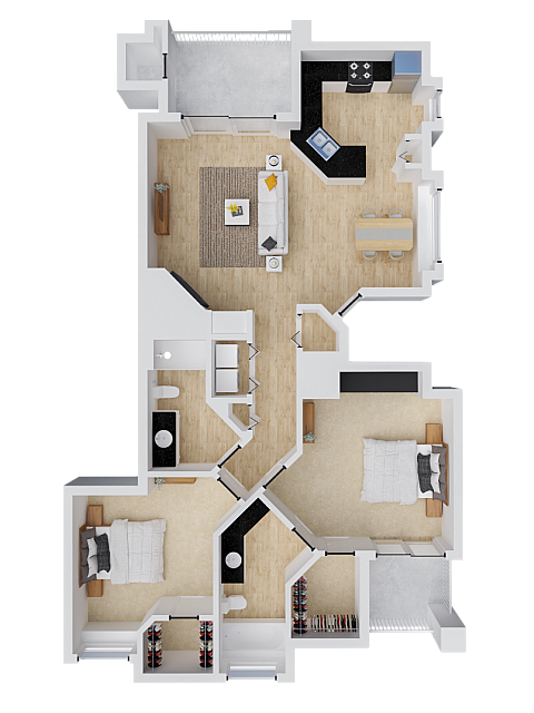 2 Dormitorios, 2 Baños, 1031 pies²Disponible AhoraGalería del Modelo