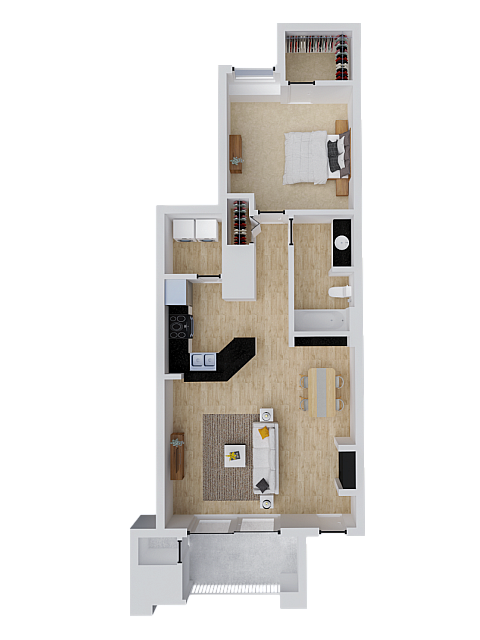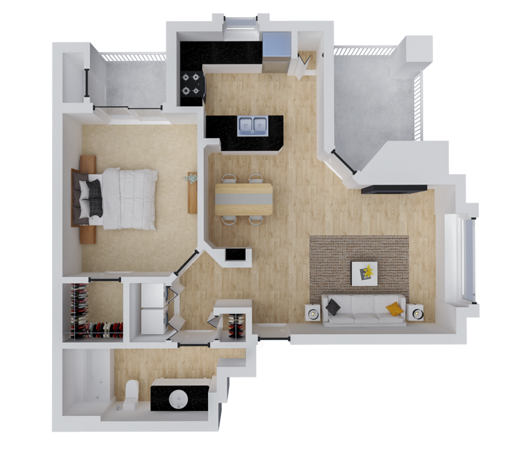 1 Dormitorio, 1 Baño, 712 pies²Disponible AhoraGalería del Modelo