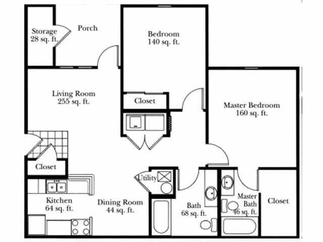 Modelo de apartamento: Two Bedroom2 Dormitorios, 2 Baños, 937 sq ftNo Disponible![]()