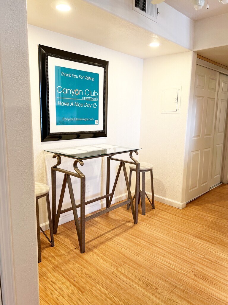 Canyon Club Apartments es un complejo orientado a la familia perfectamente ubicado a solo una caminata de distancia de excelentes escuelas, tiendas, restaurantes y lugares de entretenimiento. A minutos de distancia de Sahara Avenue y la autopista interestatal I-515, tendrás fácil acceso a todos los recursos de la ciudad. Ya no necesitas buscar más para encontrar un gran apartamento. Canyon Club Apartments te facilita el vivir donde te gusta trabajar y divertirte. Aquí, en Canyon Club Apartments, nuestros apartamentos de una, dos y tres habitaciones están diseñados para brindarte apartamentos que son cómodos y asequibles. Con cinco planos de planta para elegir, te aseguras de que encontrarás un hogar que se adapte a tus necesidades. Cada apartamento cuenta con servicios que suman a tu nivel de satisfacción general y estilo, tales como electrodomésticos nuevos, nuevas y lujosas alfombras o pisos laminados de madera y vestidores. Relájate y disfruta de tu espacioso nuevo apartamento en planta superior o en planta baja con calefacción centralizada y aire acondicionado. En los apartamentos seleccionados, te encantará la vista de nuestros hermosos paisajes desde tu balcón o patio, lavadora y secadoras, y cocinar tus platos favoritos será más fácil en tu cocina eléctrica completamente equipada. No solo contamos con fabulosos apartamentos, sino también con un complejo con hermosos paisajes donde siempre te sentirás bienvenido. Si tienes un estilo de vida activo, estarás encantado con nuestras dos resplandecientes piscinas para los cálidos días de Las Vegas. Usa nuestro centro de negocios con conexión Wi-Fi gratuito para todas tus necesidades de computación. Los niños disfrutan al correr por el césped y el área de juegos para niños, mientras que nuestro complejo de apartamentos que admite mascotas se asegurará de que tu amigo peludo no se quede afuera de la diversión. Nuestro personal en el lugar está preparado para ayudarte rápidamente si nos necesitas. Descubre un hogar que te encantará en Canyon Club Apartments.