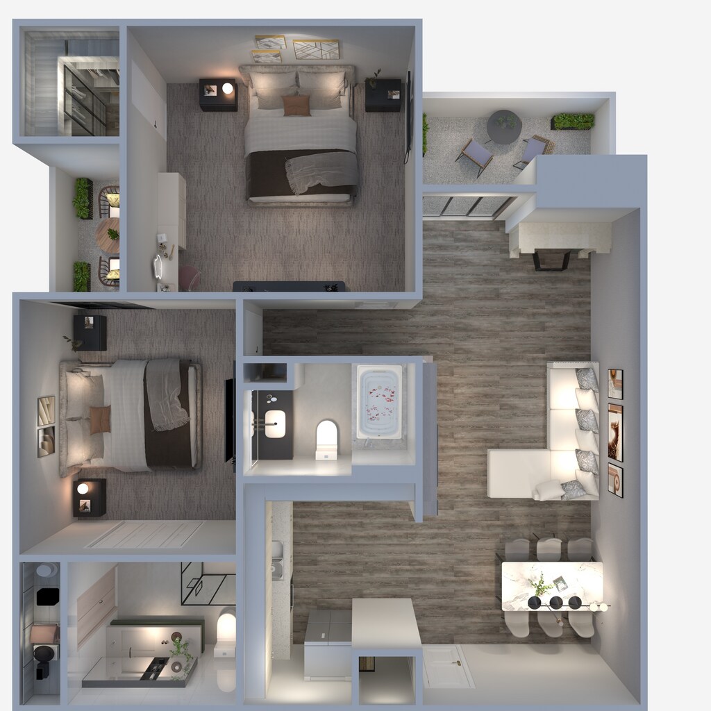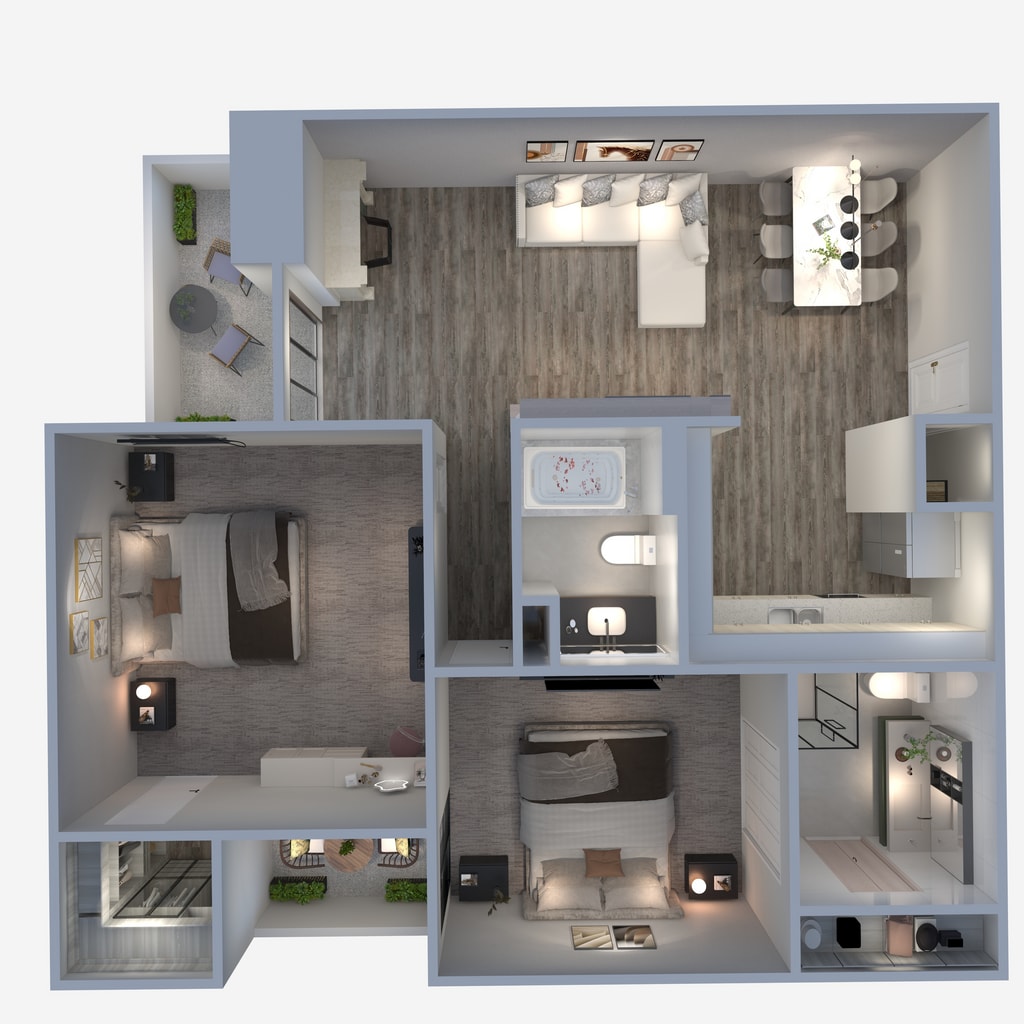 2 Dormitorios, 2 Baños, 1089 pies²Disponible AhoraEl más grandeEsta opción tiene las unidades más grandes para este modeloGalería del Modelo