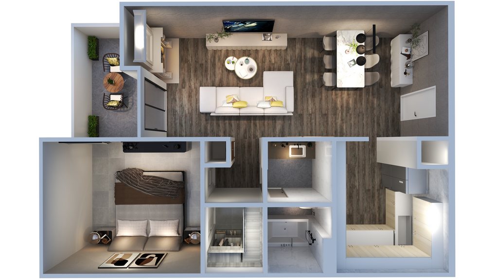1 Dormitorio, 1 Baño, 759 pies²Disponible AhoraGalería del Modelo
