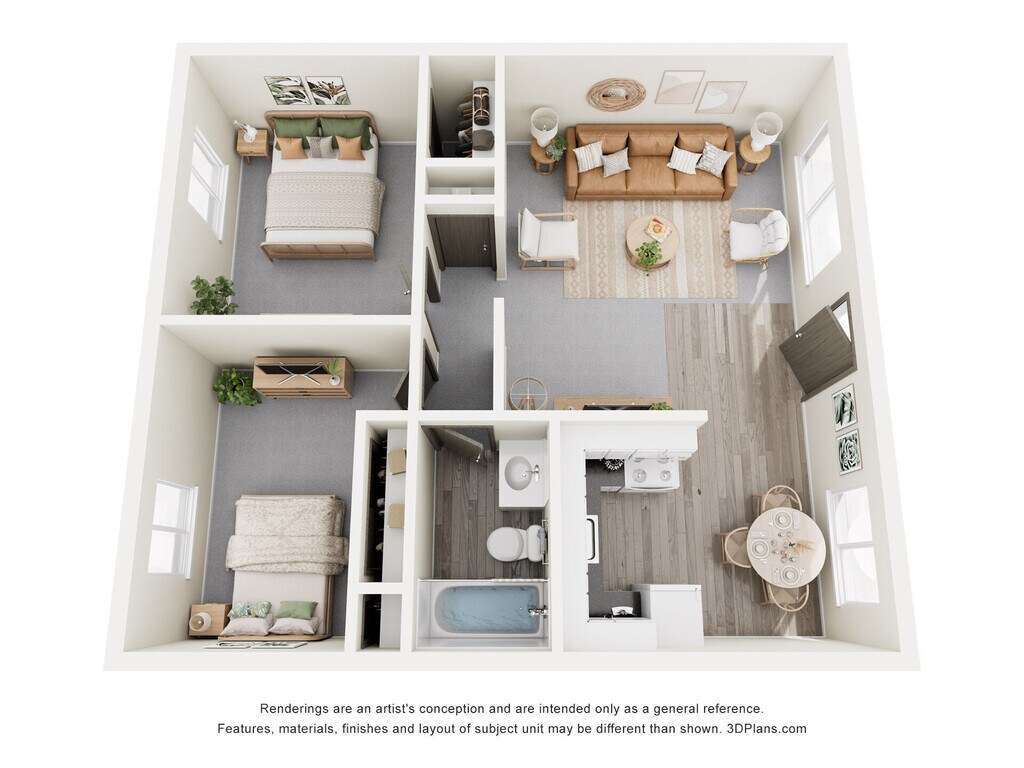2 Dormitorios, 1 Baño, 710 pies²Disponible AhoraGalería del Modelo
