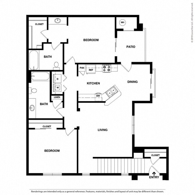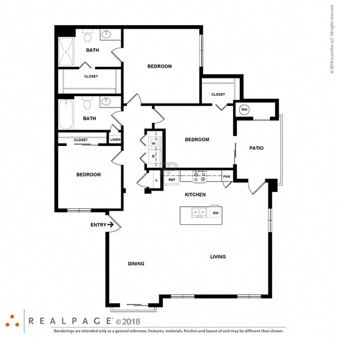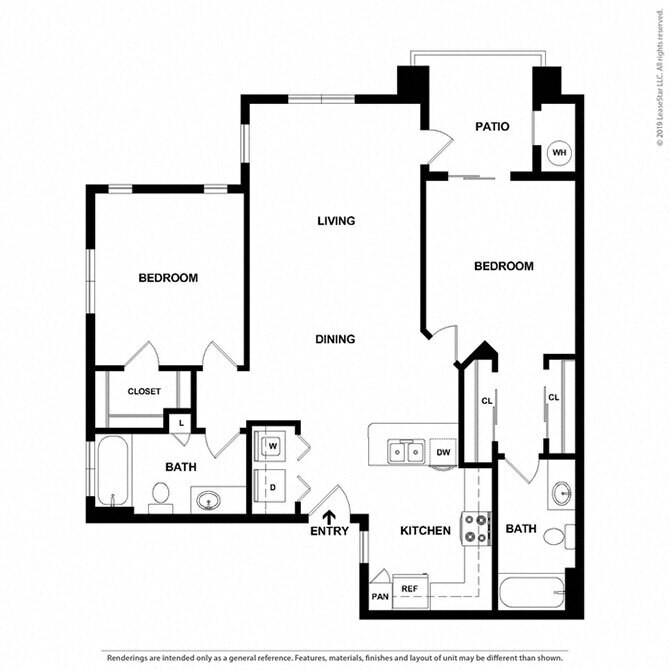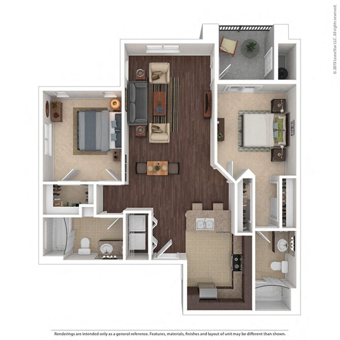 Modelo de apartamento: The Jordan2 Dormitorios, 2 Baños, 1033 sq ftNo Disponible![]()