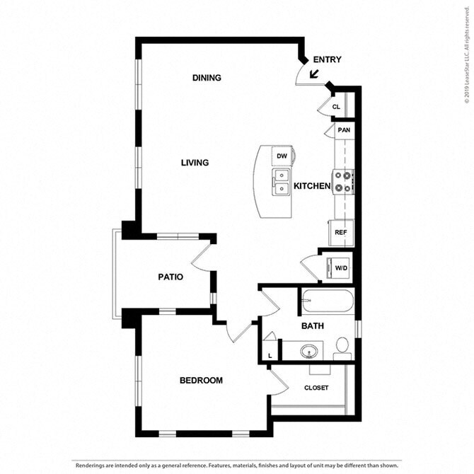 Modelo de apartamento: The Reynolds1 Dormitorio, 1 Baño, 741 sq ftNo Disponible![]()