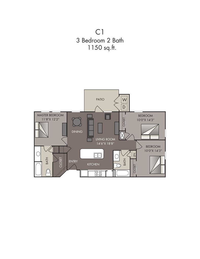 Modelo de apartamento: A1EDesde $1,1011 Dormitorio, 1 Baño, 618 sq ftDisponible Ahora![]()