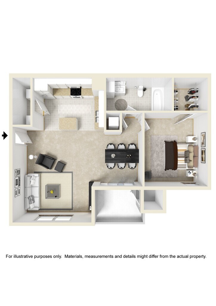 1 Dormitorio, 1 Baño, 814 pies²Disponible AhoraGalería del Modelo