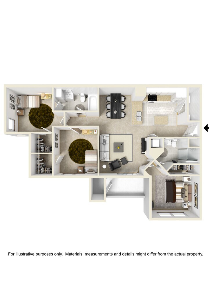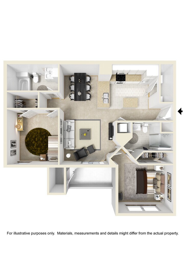 2 Dormitorios, 2 Baños, 1049 pies²Disponible AhoraGalería del Modelo