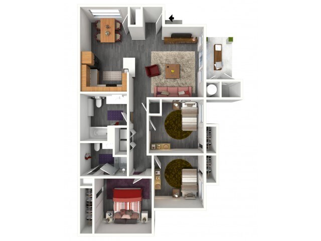 Modelo de apartamento: 4 Bedroom4 Dormitorios, 2 Baños, 1319 sq ftNo Disponible4 Bedroom - Plano 1